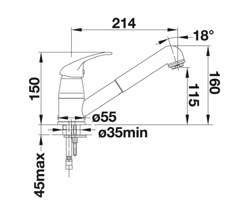 - Pružné připojovací hadice o délce 350 mm a s 3/8‘‘ maticí pro mimořádně snadnou a bezpečnou montáž