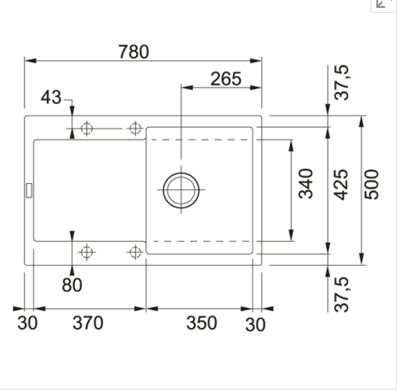Rozměr dřezu 425.00 mm