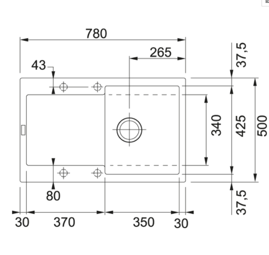 Spodní skříňka 450.00 mm Ventil 3 1/2'' sítkový Délka 780.00 mm Šířka 500.00 mm Rozměr dřezu 350.00 mm Rozměr dřezu 425.00 mm Hloubka dřezu 200.00 mm Výřez 760.00 mm Výřez 480 ...Více informací