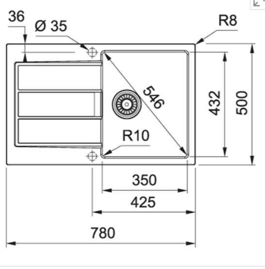 Dřez: 350 × 432 × 200 mm