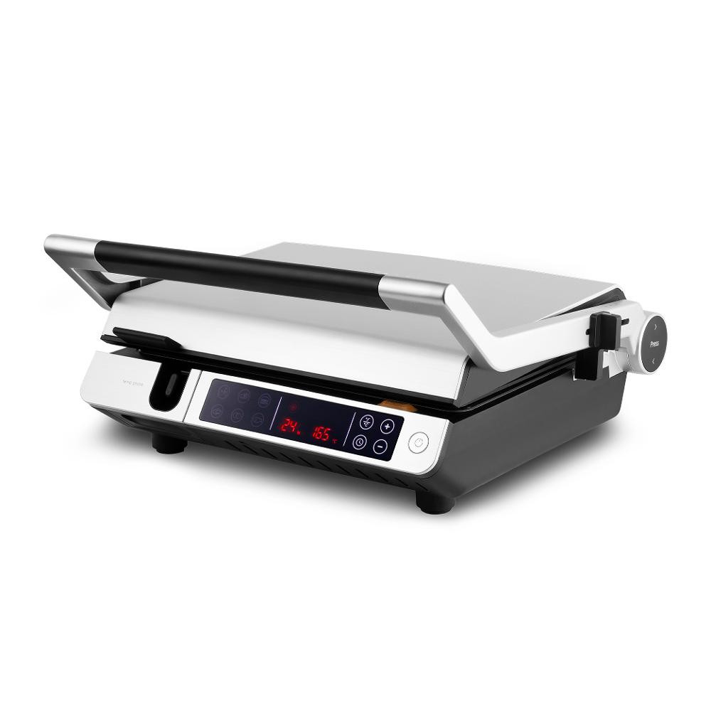Na velkém, dobře čitelném dotykovém displeji si můžete zvolit z 6 nastavených programů od steaku po panini. Gril je vybaven časovačem, který vám pohlídá dobu grilování z jedné i druhé strany pokrmu.