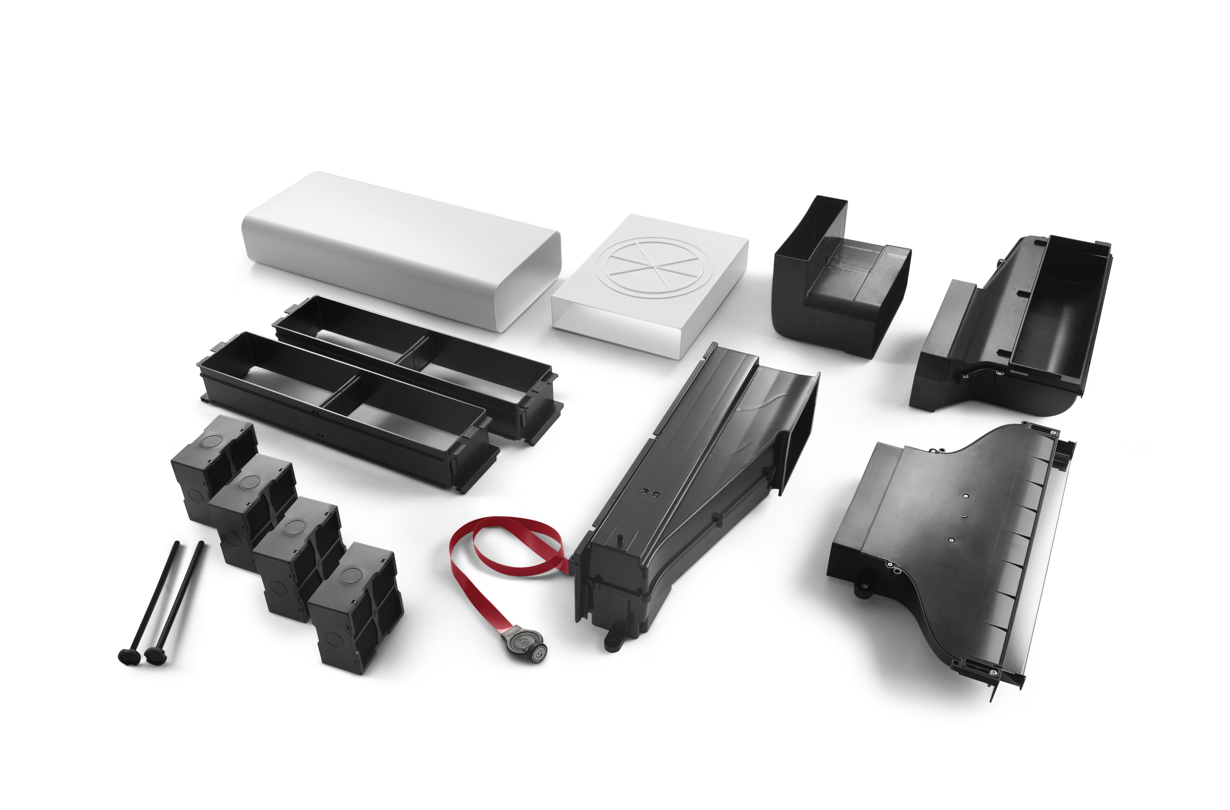 Sada obsahuje speciální díl pro umístění uhlíkových filtrů, potrubí, vyústění do soklu a keramické uhlíkové filtry
