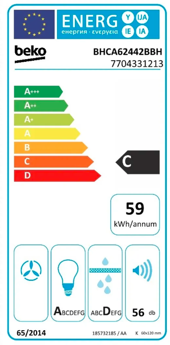 Kovové tukové filtry, možno mýt v myčce Spotřeba el. energie: 59 kWh/rok