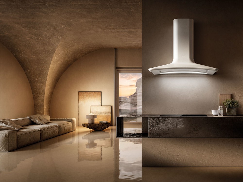 SWEET WHITE  v povrchové úpravě matná bílá je tou správnou volbou pro všechny moderní kuchyně.  Schopnost harmonického sladění Sweet se současným životním prostorem je potvrzena. Technopolymer umožňuje vytvořit odlehčené linie, které změkčují tvary. Tenká linie leštěné nerezové oceli charakterizuje elegantní perimetrické sání, které zvyšuje zachytávání výparů z vaření.