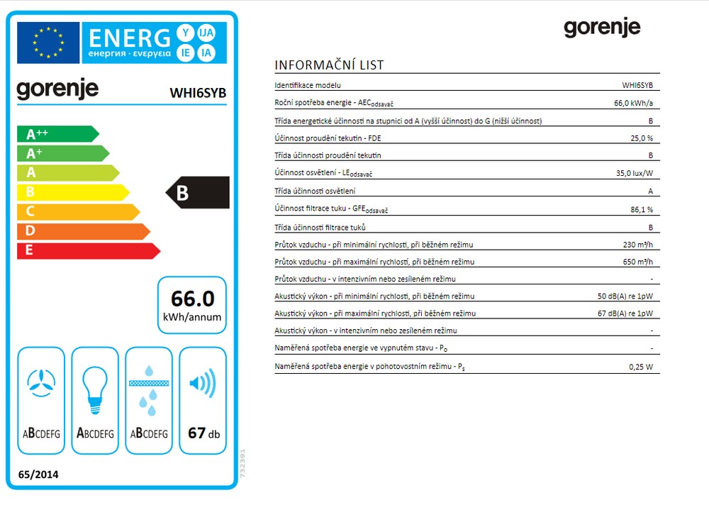 Roční spotřeba energie: 66 kWh