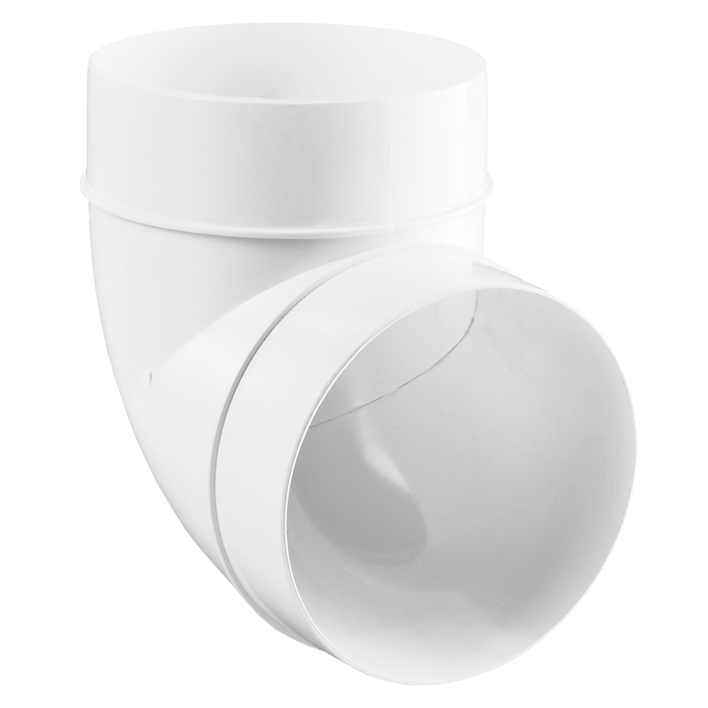 PVC vzduchotechnické koleno Ø 100 mm a sklon 90° se využívá k napojení potrubí nebo komponentů o průměru 100 mm.