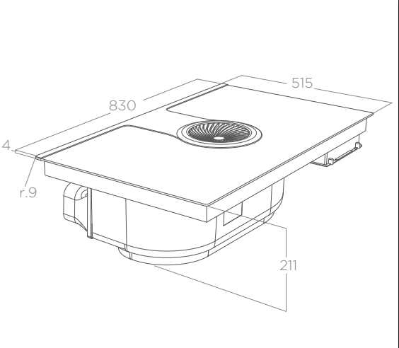 Varné zóny: 1 (2,3 - 3 kW) - Ø 200 mm | 1 (1,2 - 1,4kW) - Ø 160 mm | 1 (1,6 - 1,85kW) - 210x190mm | 1 (2,1 - 3kW) - 210x190mm