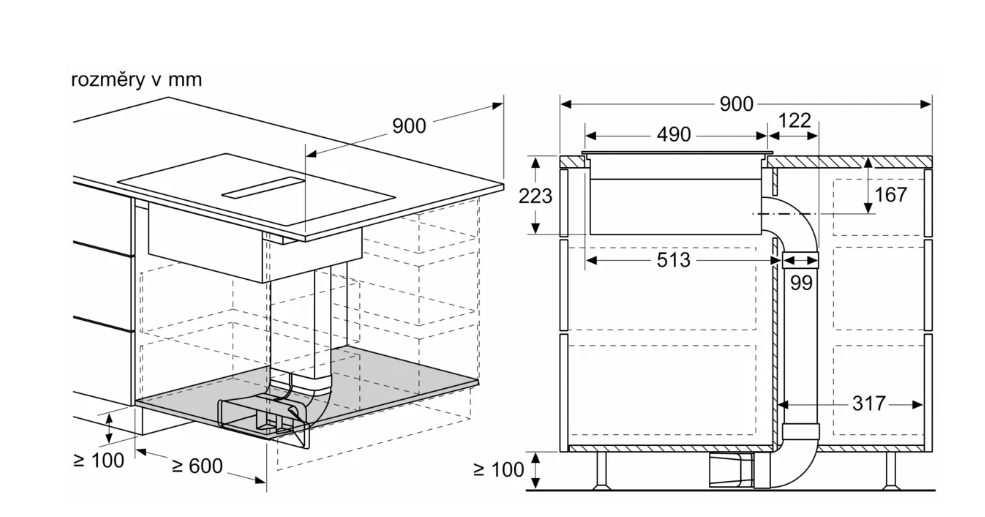 iQ300 Indukční varná deska s odsáváním 60 cm instalace na pracovní desku bez rámečku