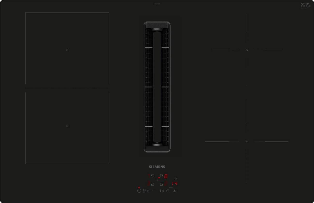 Elegantní indukční varná deska Siemens ED801BS16E v černé barvě s integrovaným odsavačem par umožňuje rychlé, bezpečné a čisté vaření. Nabízí 4 varné zóny různého výkonu s ino ...Více informací