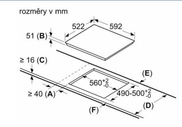 rozměry pro vestavbu (V x Š x H) : 51 x 560 x 490 - 500 mm