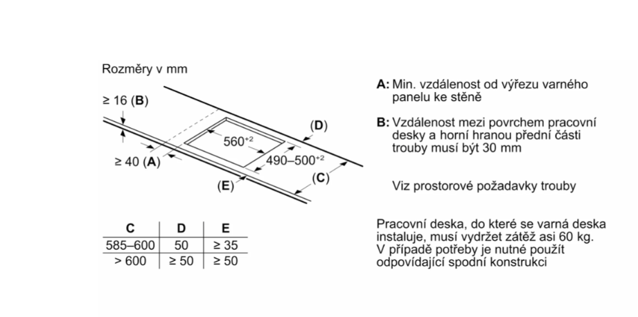 Požadovaná velikost otvoru pro instalaci (v x š x h)