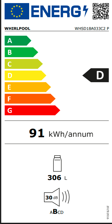 Svojou energetickou triedou D vám tento spotrebič Whirlpool umožní užiť si skvelý výkon aj optimálnu spotrebu energie.