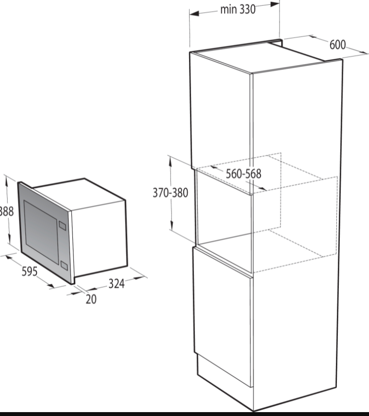 Maximální výška otvoru pro vestavění 380 mm