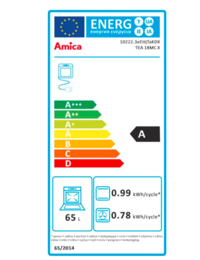 Amica pečuje o životní prostředí a kromě nejnovějších technologií zavádí také pro ekologická řešení. Proto i v souladu s novou normou Evropské Unie mají všechny sporáky a trouby energetickou třídu A. Energetická třída A garantuje nízké účty za elektrickou energii.
