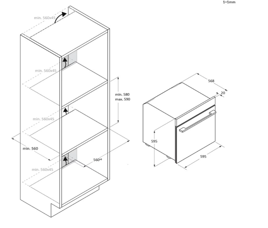 Výška pro vestavbu cm 58
