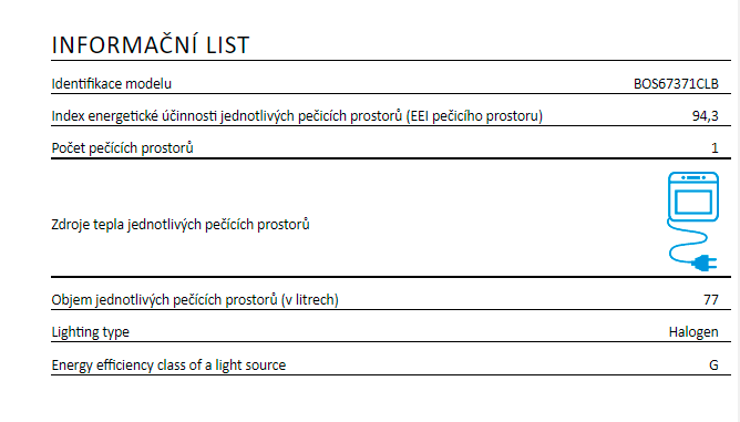 Informace energetické nálepky / Vlastnosti :