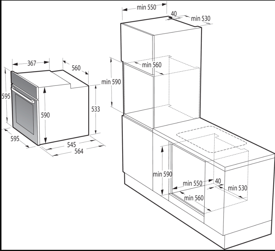 Minimální výška otvoru pro vestavění (mm) 590 mm