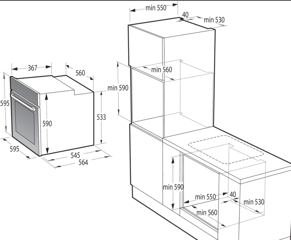 | Výška pro vestavbu cm | 59 |