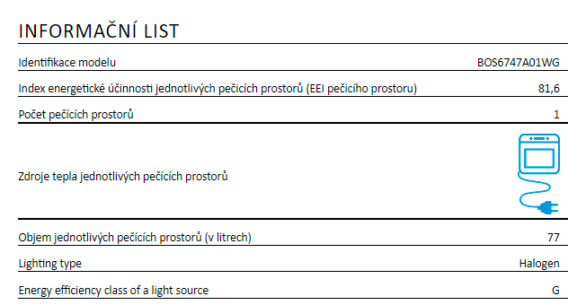 Spotřeba energie (nucená konvekce vzduchu)        0,71 kWh