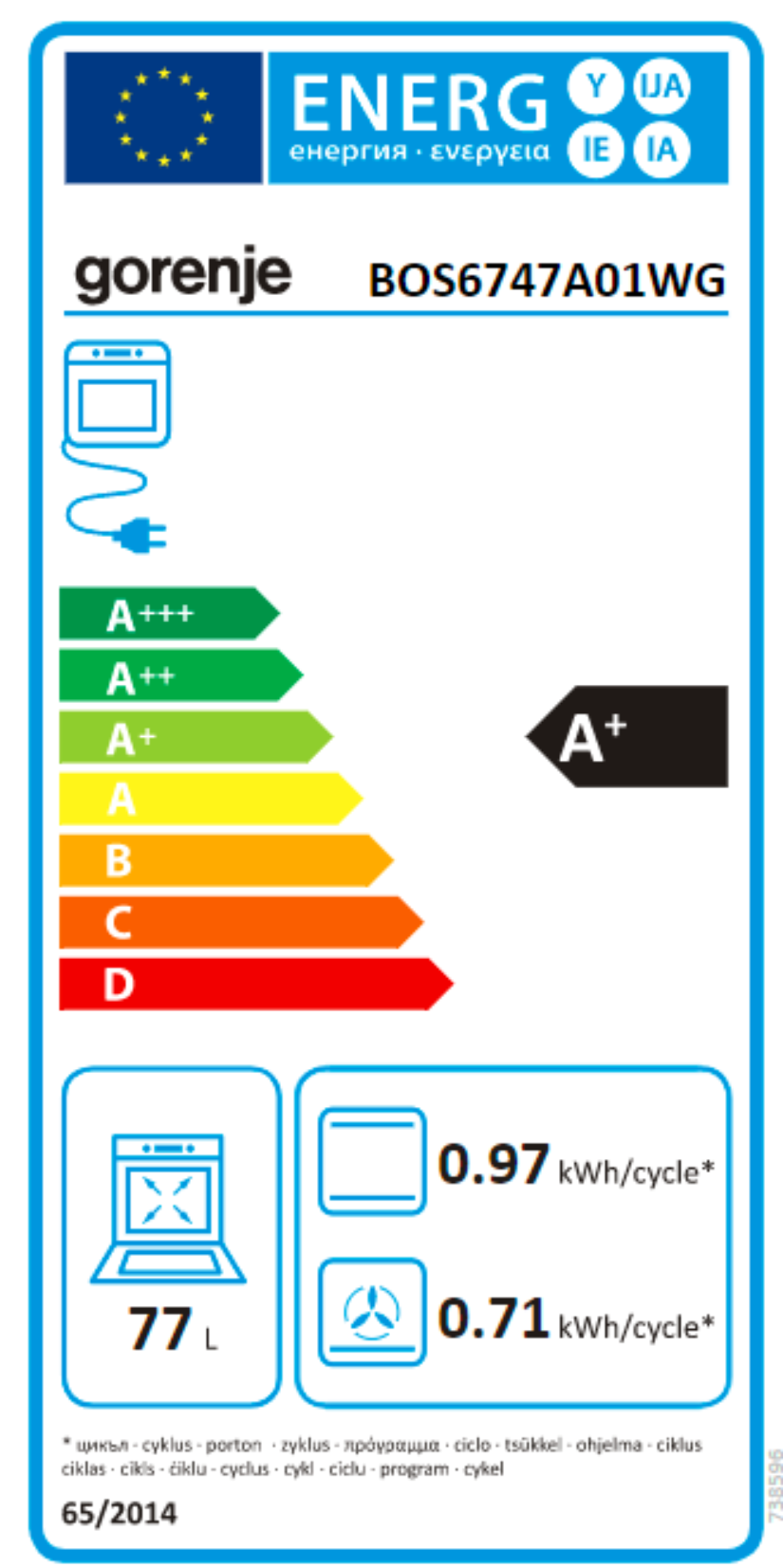 Spotřeba elektrické energie na jeden cyklus v režimu ventilátorové nucené konvekce (2010/30 / ES)        0,71 kWh/cycle