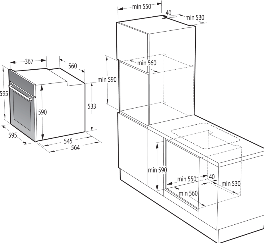 Minimální výška otvoru pro vestavění (mm)        590 mm