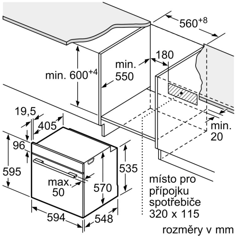 rozměry niky (V x Š x H): 585 mm - 595 mm x 560 mm - 568 mm x 550 mm