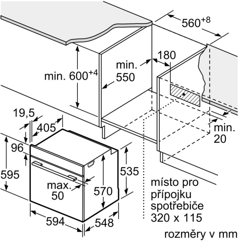 rozměry niky (V x Š x H): 585 mm - 595 mm x 560 mm - 568 mm x 550 mm