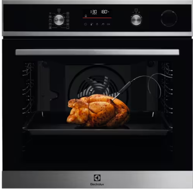 Díky naší teplotní sondě dosáhnete vždy skvělých výsledků. Umožňuje vám sledovat teplotu ve středu pokrmu, a jakmile teplota dosáhne požadovaného stupně, trouba ukončí jeho přípravu.