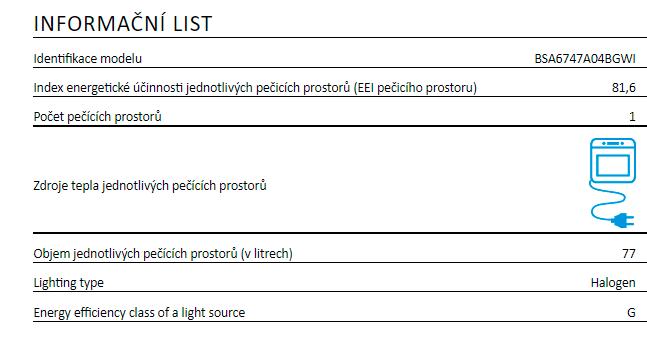 Spotřeba energie (nucená konvekce vzduchu) 0,71 kWh