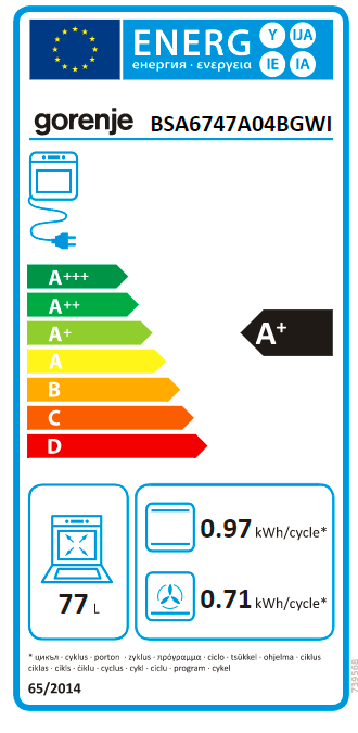 Spotřeba elektrické energie na jeden cyklus v režimu ventilátorové nucené konvekce (2010/30 / ES) 0,71 kWh/cycle
