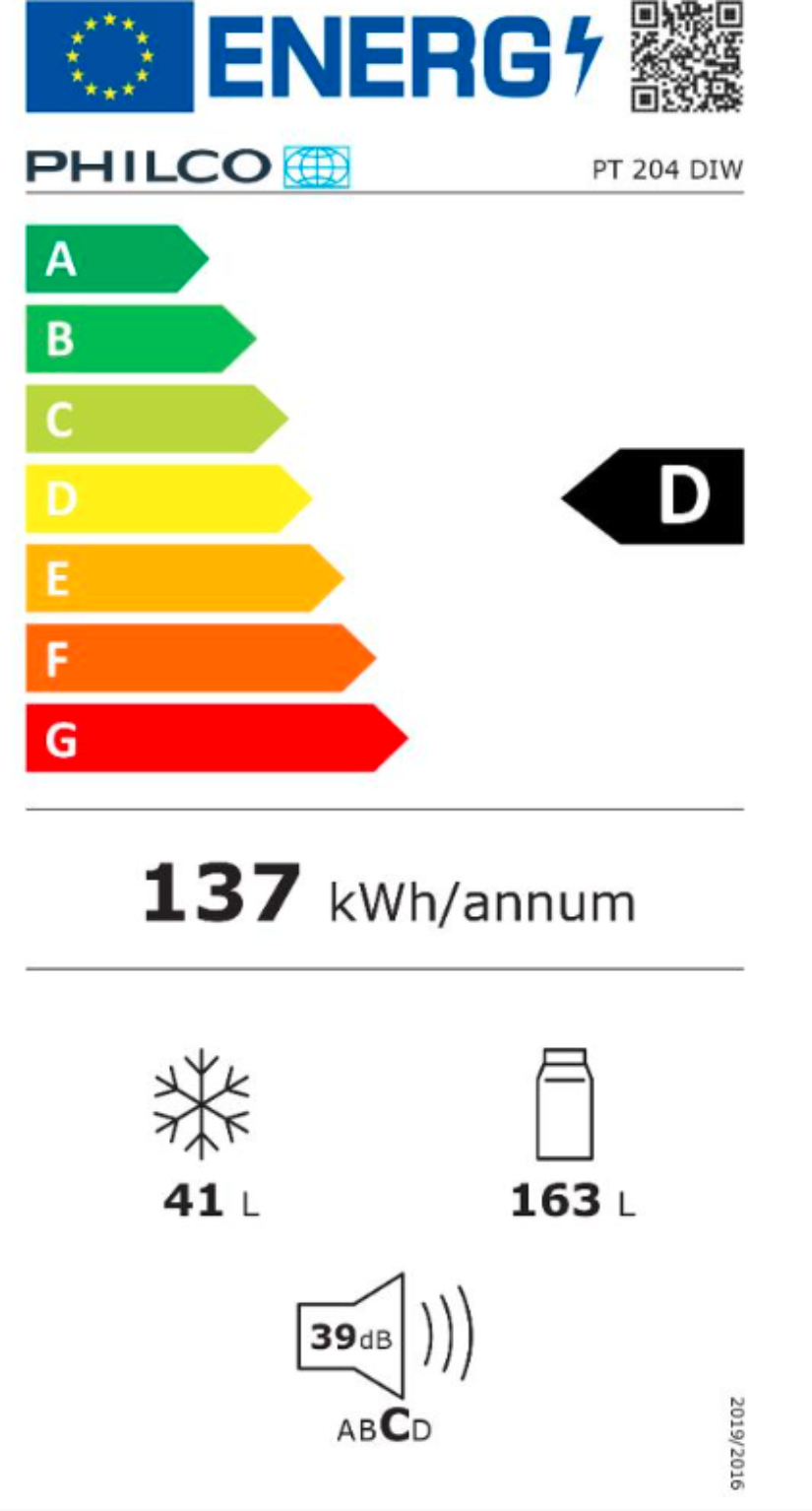 Kombinovaná chladnička Philco PT 204 DIW Energetická třída D Volně stojící Umístění mrazící části nahoře Počet dveří 2 Celkový objem 204 l Objem chladničky 163 l Objem mrazáku ...Více informací