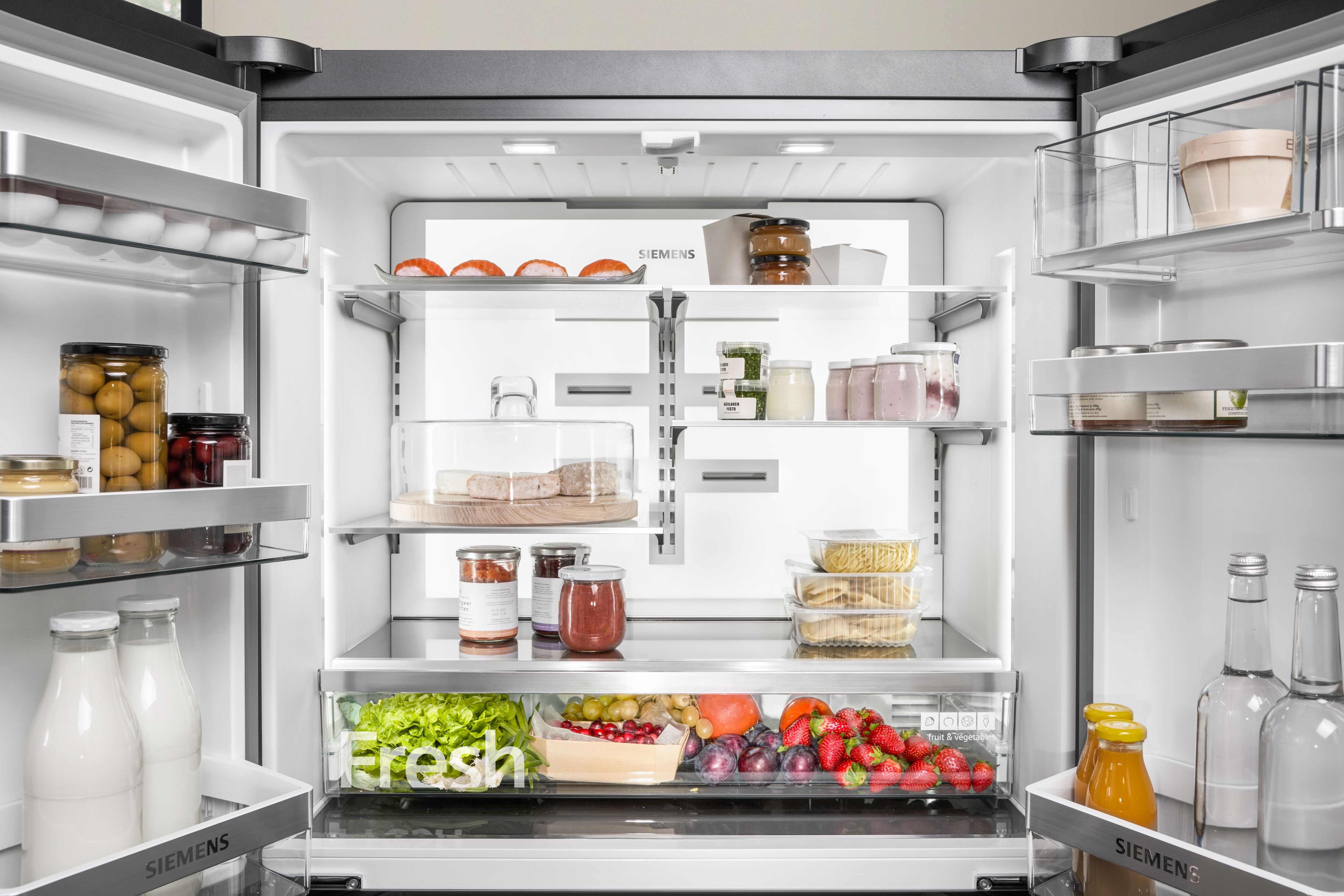 Každá potravina vyžaduje různé podmínky skladování. Díky průvodci skladováním potravin ve vaší aplikaci Home Connect si už nemusíte pamatovat všechny specifické požadavky: dozvíte se kde je ideální místo na jejich uskladnění a dokonce i jaké jsou nutriční hodnoty vašich potravin v chladničce.